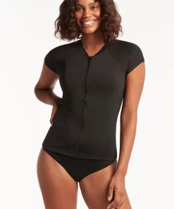 Sea Level Women’s Swimwear Mauritius Long Sleeved Rash Vest – Final Sale | Black