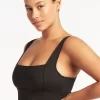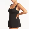Sea Level Women’s Swimwear Eco Essentials Black Eco Essentials Square Neck Swim Dress Best Sellers | Black